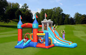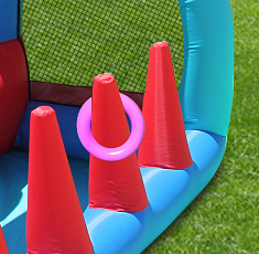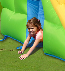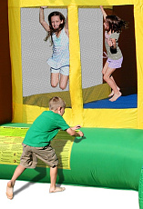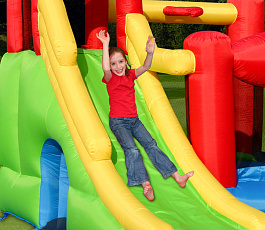 - Надежность. Надувные батуты абсолютно безопасны для детей. Мягкие и высокие бортики, а также большие сетки защищают от риска получения травм или выпадения из игровой зоны.