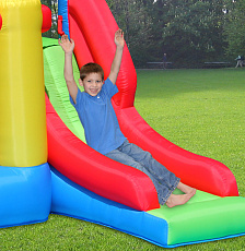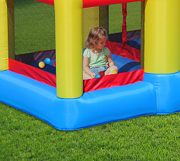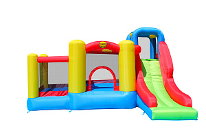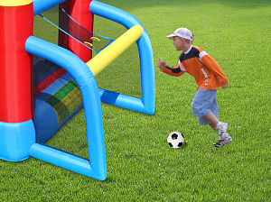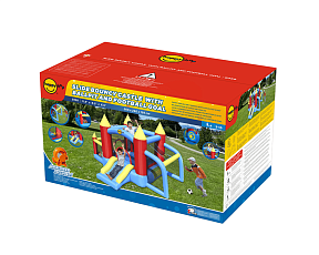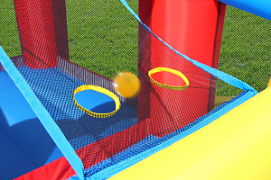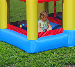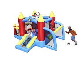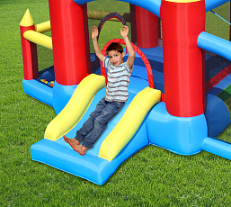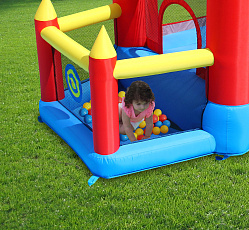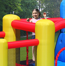 Безопасный надувной комплекс для детей подарит ощущение присутствия в средневековой сказке, позволит погрузиться во времена рыцарей и принцесс или просто от души попрыгать на батуте. Играть в надувном центре одновременно могут три ребенка.
