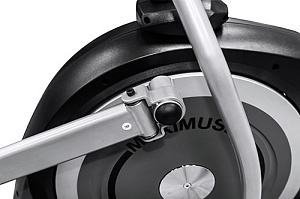 Следующим элементом высокой эффективности и комфорта тренажера является передаточный механизм, который состоит из приводного ремня Poly-V с преднатяжителями и магнитной системы нагружения. Ряд магнитов работает по бесконтакному принципу, что обеспечивает движение на любых скоростях абсолютно равномерно. Стальной маховик весом 15 кг и с равномерным распределением веса обеспечивает несравненную плавность хода тренажера. Все передаточные детали изготовлены с помощью сверхточной лазерной резки и вытачки на современных станках с программным управлением.