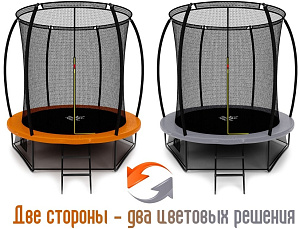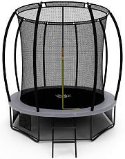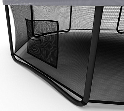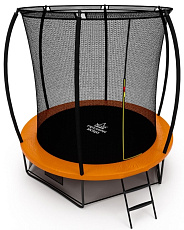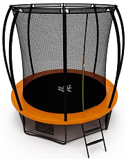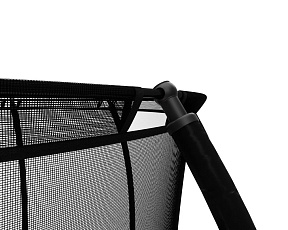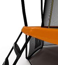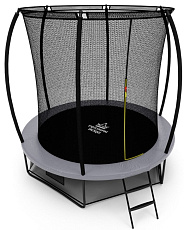 - Каркасные. Такие батуты для детей имеют устойчивое основание и большую площадку для прыжков. Безопасность обеспечивается за счет сетки, системы амортизации, двухконтурного входного клапана и других элементов. Некоторые конструкции продаются в комплекте с лестницей и баскетбольным кольцом.