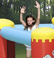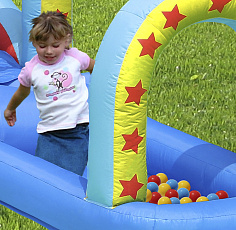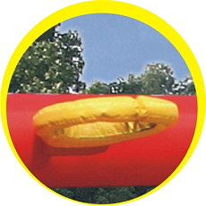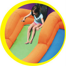 - Надежность. Надувные батуты абсолютно безопасны для детей. Мягкие и высокие бортики, а также большие сетки защищают от риска получения травм или выпадения из игровой зоны.