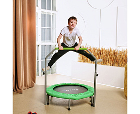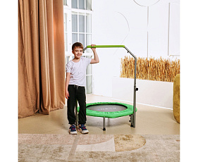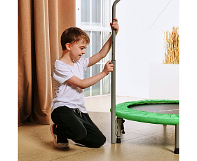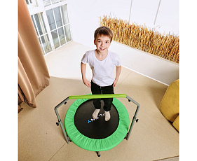 Высота батута составляет 22 сантиметра, а высота поручня варьируется от 100 до 124 сантиметров. Это позволяет использовать батут людям разного роста и возраста.