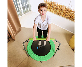 Спортивный батут DFC PLENY 40" синего цвета с поручнем изготовлен из качественных и прочных материалов, способных выдерживать большие нагрузки. Он рассчитан на максимальный вес пользователя 100 килограмм.