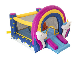 Детский игровой центр состоит из двух зон: горки для катания и места для прыжков, выполненного в виде квадратного домика. Весёлые подвижные игры, море положительных эмоций — всё это обеспечит надувной комплекс HAPPY HOP! Прыжки на батуте очень полезны для здоровья: они укрепляют мышцы, развивают вестибулярный аппарат, стимулируют кровообращение, улучшают физическую форму и отлично поднимают настроение. Изделие отличается компактностью, его легко устанавливать и демонтировать.
