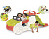 Хотите подарить ребенку веселое лето? Закажите для него машину приключений Smoby! Это увлекательный игровой комплекс. Он имеет вид машины с горкой, скат которой составляет 150 см. Еще одна приятная новость — под капотом машины находится песочница, хорошо защищенная от дождя. Двери машины можно открыть, а задние колеса образуют тоннель. Есть руль с музыкальными эффектами — для его работы требуются 3 батарейки LR44, которые уже входят в комплект.