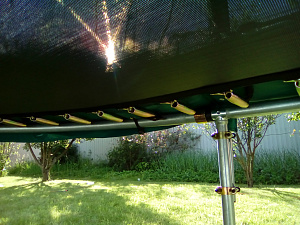 Пружинные батуты для детей менее разнообразны в плане дизайна, чем надувные. Зато они предназначены именно для прыжков. Этот аттракцион позволит оторваться от земли на большую высоту. Поэтому он подходит ребятам постарше. Выбирая его, нужно смотреть на следующие параметры: