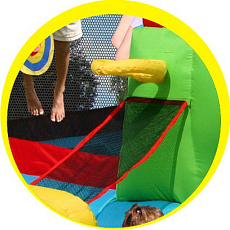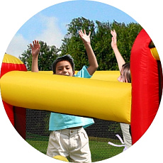 Все наши аттракционы абсолютно безопасны. Они либо имеют специальные надувные ограждения, либо оборудуются защитной сеткой. Случайные падения с них исключены. Но все же перед игрой детям стоит напомнить правила поведения. Драться и баловаться здесь нельзя.